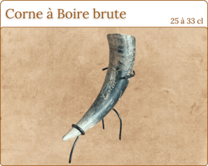 Savourez vos breuvages dans nos cornes à boire ! Parfaites pour vos banquets et festins, elles transforment chaque gorgée en une célébration joyeuse. Alors, préparez vos meilleurs récits et trinquons à la bonne humeur ! Skål !